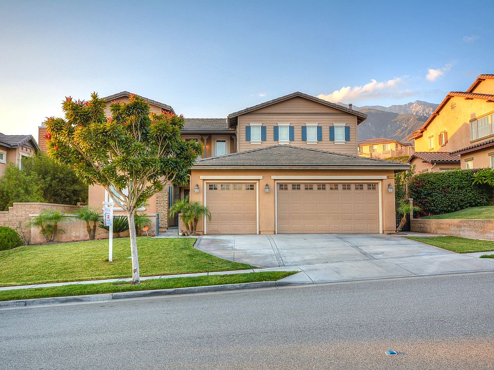 BEAUTIFUL 5 BEDROOM/4.5 BATHROOM HIGHLY UPGRADED TURN KEY HOME IN THE GATED RANCHO ETIWANDA ESTATES COMMUNITY OF RANCHO CUCAMONGA. HOME IS THE FINEST K.HOVNANIAN HAS TO OFFER. 10 FOOT HIGH CEILINGS AND CROWN MOLDINGS THROUGHOUT THE HOME. RAISED HEARTH FIREPLACE IN FAMILY ROOM WITH BUILT-INS, ALSO WIRED FOR SURROUND SOUND AND INCLUDES NEST SYSTEM. GARAGE IS SET UP WITH A CHARGER FOR ELECTRIC VEHICLES WITH A SEPERATE METER WHICH GIVES YOU LOWER RATES. GOURMET KITCHEN WITH GRANITE COUNTER TOPS AND BEAUTIFUL TILE FLOORING, ALL STAINLESS STEEL APPLIANCES, BUTLERS PANTRY/WET BAR. GROUND FLOOR LAUNDRY ROOM WITH SINK AND LOTS OF COUNTER SPACE AND CUSTOM SHELVING. CUSTOM SHOE CLOSET. MINI MASTER ROOM RETREAT ON 1ST FLOOR W/ATTACHED AND UPGRADED FULL BATH. WROUGHT IRON STAIRCASE RAILING LEADS TO A LANDING WHICH OFFERS BUILT IN A WORK/COMPUTER STATION, SECOND FLOOR LOFT/POSSIBLE THEATER ROOM, MASTER RETREAT WITH 2 WALK IN CLOSETS, JETTED TUB . FRONT BALCONY OFF OF HALLWAY WITH SPECTACULAR MOUNTAIN VIEW. FRONT COURTYARD FOR EVENING ENTERTAINING.