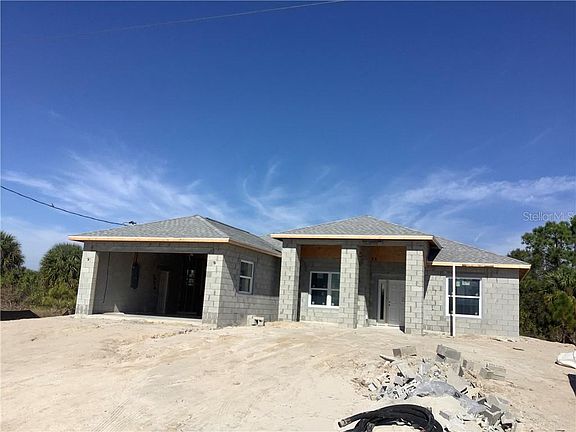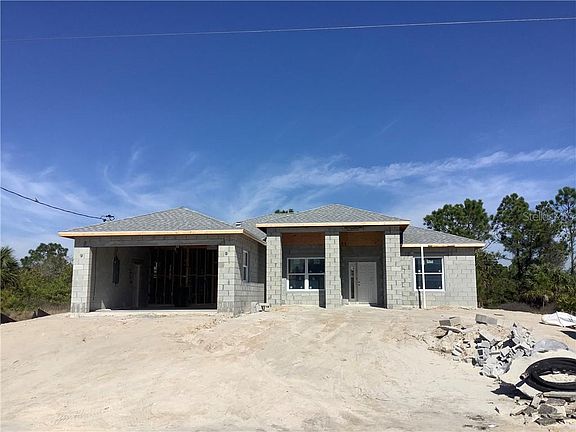 Under Construction. Under construction. Approximately 60 days to completion. This brand new custom home offers three bedroom, two bath, a great open floor plan with triple go away sliders that lead to large lanai. Large Master suite with his and her walk in closets and an en suite with walk in shower. Coffered ceiling's in great room and master suite. Beautiful upgraded finishing touches to include granite tops throughout, wood cabinetry, and laminate wood flooring throughout. Home includes vinyl Impact low e hurricane windows and impact doors thru-out.This home is located on a waterfront canal that builder will clear to waterway at final grade and sod. AAA location, amazingly located only 7 miles to the beach, boating, and over 11 golf courses. Why wait for a custom new build when you can have it all in a short period of time. Buy now and take advantage of the exceptional low rates and great price. Call today for details. FYI property not in flood zone, no flood insurance required.