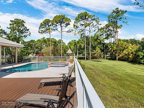 One-of-a-kind, custom-built home in the highly desirable community of The Acreage. This home is situated on a private and well manicured 1.15 acre lot and features a pool and spa and an amazing wood deck which is perfect for entertaining friends and family. Triple split floor plan, Master suite overlooking your pool, dual sided fireplace in bedroom and formal living room, dual walk-in closets, renovated bathroom with dual vanity sinks, glass shower and jacuzzi tub. Spacious kitchen with wood cabinets, granite countertops, stainless steel appliances overlooking breakfast nook and family room. Three car garage has plenty of room for additional storage and hurricane panel shutters, laundry room has newer washer and dryer, extra fridge and sink. Don't miss out on this amazing home!