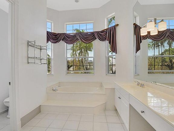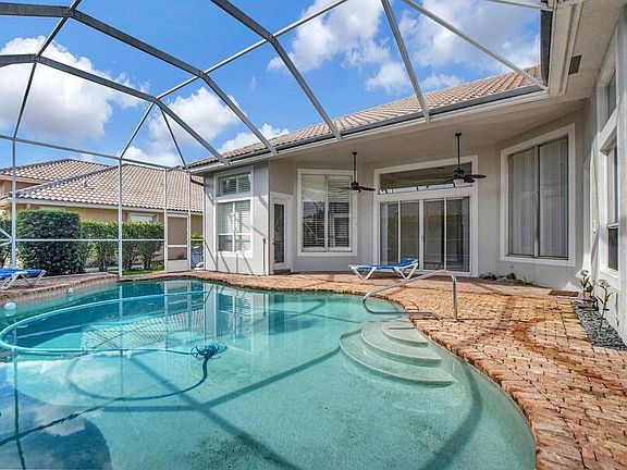 Location! Don't miss the opportunity to live in one of the most desirable neighborhoods in the beautiful city of Boca Raton. Easy to show. This private corner home features a 3-car garage, extra-large driveway, and a screened pool. No carpeting throughout. The 5th bedroom is an office/den without a closet. The home has Chicago brick pavers in the front and back, and the exterior was painted in 2021. The large kitchen boasts an island, desk/workstation, built-in wine rack, Corian countertops, breakfast bar, and eat-in kitchen with custom wood cabinets. Enjoy the family room, living room, and a separate laundry room with storage closets, a laundry tub, 2 A/C units, and 2 water heaters. The spacious master suite features plantation shutters, "his and hers" closets, and separate baths. The community includes 2 manned gatehouses, a clubhouse, 6 lit tennis courts, and a full-court basketball court with lights. COURTESY OF Meridian Properties Inc.