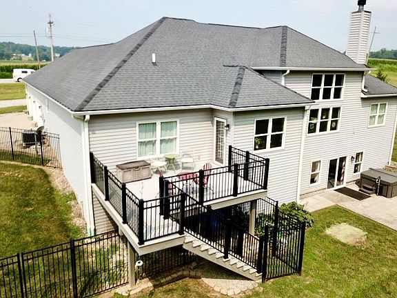 Quality construction is what you see when you visit this lovely home on 6+ acres! Home features soaring ceilings, abundant natural light, a walkout basement and high quality finishes throughout. 3 car attached garage and pole barn/workshop provide easily accessible storage space for all of your equipment or toys. Walkout basement includes kitchenette, storage space, a 1/2 bath and a large living area and opens onto a patio with hot tub. Fencing allows access for kids or pets to run and play safely and fenced area can be accessed from the home so pets can virtually "walk themselves" when weather is not ideal.