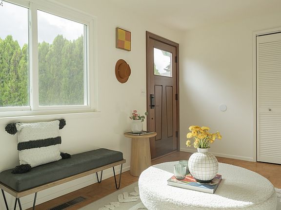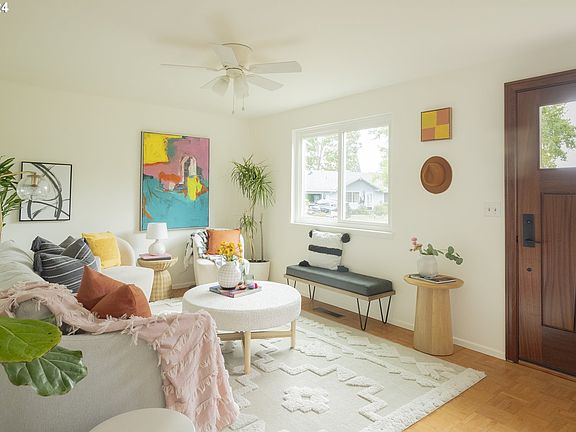 Nestled at the end of a peaceful cul-de-sac, this charming 3-bedroom, 2-bathroom home offers the perfect blend of tranquility and space. The open and airy layout allows for an abundance of natural light to pour in, creating a warm and inviting atmosphere throughout. With both a living and family room, this home provides ample space for relaxation and entertaining. The kitchen boasts plenty of storage, perfect for the home chef, while the dining room opens to a cozy backyard patio, ideal for outdoor meals or lounging. The expansive fenced backyard is a true gem, featuring mature fruit trees and bushes, and even offers space for RV or boat parking. Upstairs, skylights fill every corner with light. The primary space is equipped with a bathroom and bonus space that is perfect for an office, yoga studio, playroom—whatever suits your lifestyle. Located in a wonderful neighborhood known for its quiet streets, this home is just minutes away from a vibrant farmers market and the recently opened New Seasons grocery store. Whether you’re looking for comfort, convenience, or a sense of community, this home has it all. Don’t miss the opportunity to make this charming home your own! [Home Energy Score = 2. HES Report at https://rpt.greenbuildingregistry.com/hes/OR10233592]