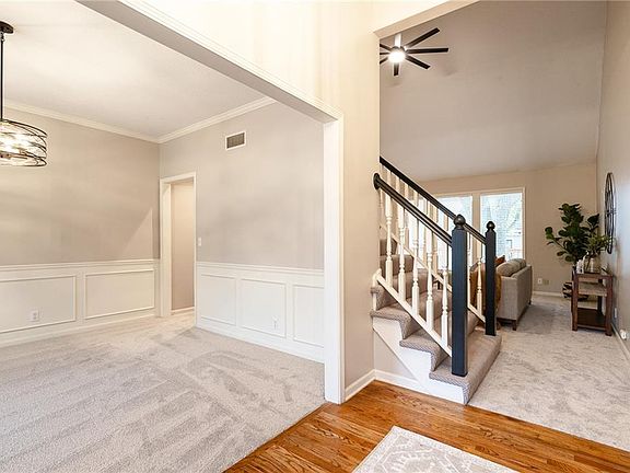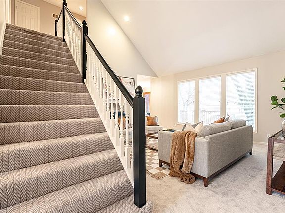 NEW Paint New Carpet and NEW lights bring this villa to life! Spacious 3-bedroom villa with a lifetime stone roof in coveted Pembroke Court maintenance provided community (6 lawn fertilizations and mowing, leaf clean up spring and fall, snow removal includes drive, sidewalk and porch, plus trash and recycle)! One of very few Villas that allow fencing! Gorgeous primary suite on the main floor, featuring floor-to-ceiling windows, an oversized, vaulted living room with a gas fireplace, and a spacious updated kitchen with an island and eat-in area are a few of the features in this easy living home. Enjoy formal dining or relax on the patio deck. The primary suite offers two vanities, a tub, shower, and dual closets. Upstairs, two additional bedrooms and a full bath provide guest privacy. Plus, an unfinished basement offers endless possibilities. Maintenance provided with low HOA!