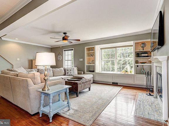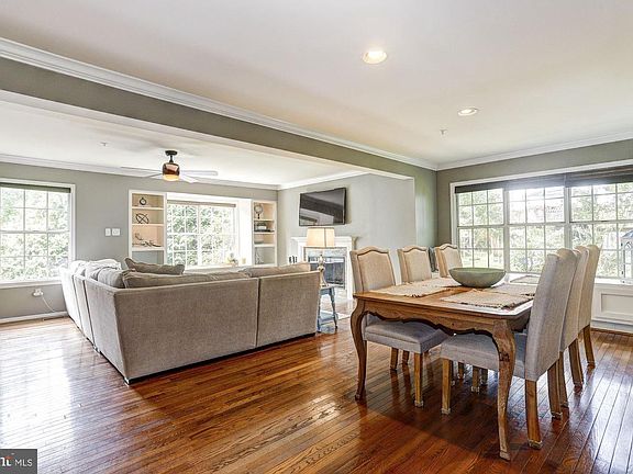 Beautifully maintained end-unit townhome nestled in the desirable Village of Hickory Ridge close to major commuter routes, shopping, dining and entertainment! Offering exceptional style, gorgeous hardwood floors, warm and neutral color palette, decorative lighting and sunbathed windows! Large living and dining room highlights a wood burning fireplace, custom built-in shelving; recessed lighting, ceiling fan, crown molding and custom window seating. Prepare gourmet meals in the tastefully updated kitchen complemented with granite counters, stainless steel appliances, center island, breakfast bar, a casual dining area and deck access. Travel upstairs to the primary bedroom adorned with a soaring vaulted ceiling, ceiling fan and an en suite bath boasting dual vanities, oversized soaking tub and a separate shower. Two graciously sized light filled bedrooms and a full bath complete the upper level sleeping quarters. The main level provides an inviting family room with a wood burning fireplace, fourth bedroom, dual entry bath; laundry area and walkout level access. Enjoy the evening breeze from the comfort of the rear deck or patio overlooking a private fenced yard and a tree lined view. Simply perfect!