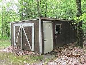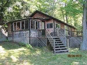 2 bedroom, 1 bath waterfront home with 1 car detached garage, sheds, and older cabin on property and 100 ft of water frontage.