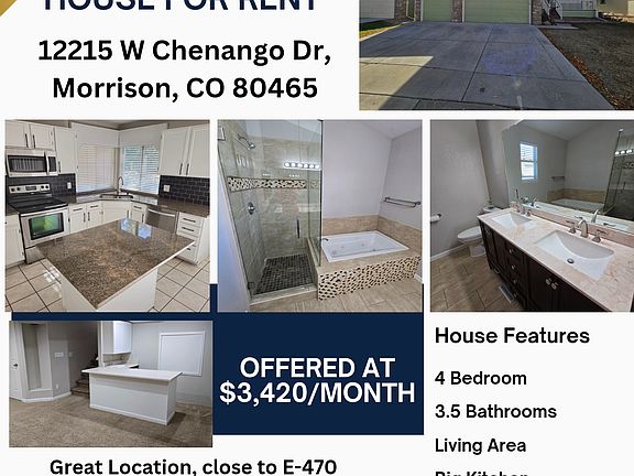 Home is in very good conditions, with two full bathrooms in second floor, half bathroom in main floor and a full bathroom in basement. The basement has a closet, perfect for another room and a bar with sink. It has a big open kitchen area, with open dinner area. It has a living area and a family room in main level. It has a nice patio area and a front porch. It has three cara garage, and a shed. The appliances are in great conditions. It has microwave, dishwasher, refrigerator, stove, washer, dryer, and new keys for the washer. It is close to E-470, I-70, Lakewood, Littleton and Golden. Close to Walmart and Home Depot. It has Central Heater and A/C. Pets allowed. New Roof installed last month. No estra fees for back ground revision. We only charge a non refundable fee of $350 per pet. It is minimum a 1 year lease. Deposit could be split in 4 payments.