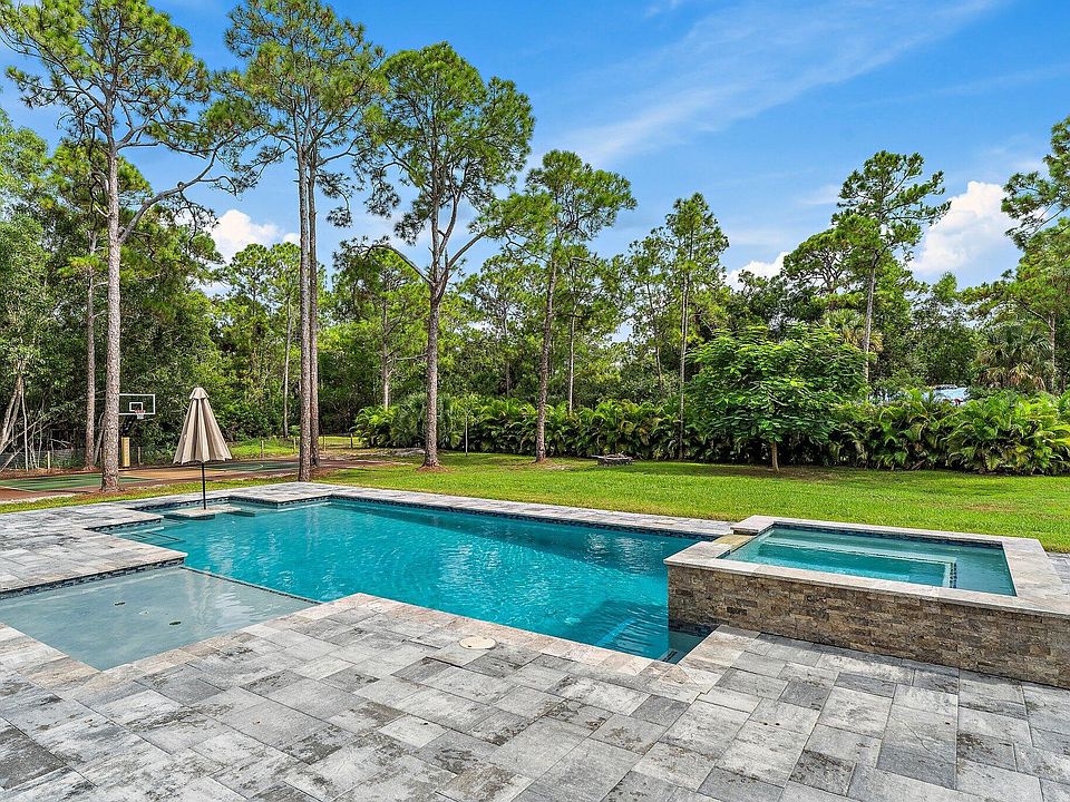 Jupiter Farms home built in 2021 with over $200k of upgrades in 2023-2024 including your very own pickleball court! New driveway, new fencing, Tesla solar + Powerwalls, and new automatic shades for the back porch are just a couple of examples of recent improvements. Take advantage of 1.5 acres of solitude while still being minutes to I-95 and Juno Beach.Offering 4 bedrooms plus a den, 4.5 bathrooms, and 3,051 sq. ft. under air (4,415 total), this home blends clean architectural design with modern comfort. The open layout features wide-plank laminate hardwood flooring, high ceilings, and natural light throughout. The kitchen shines with premium appliances, upgraded lighting, and expansive counters, perfect for entertaining. The primary suite offers a spa-style bath, custom finishes, and walk-in closets.