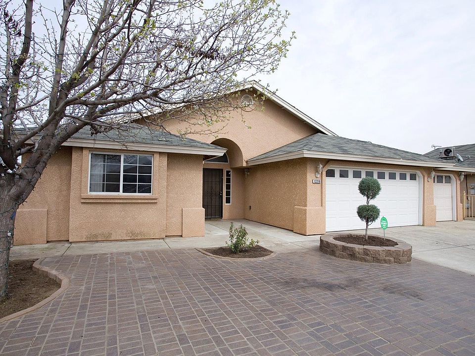 This is a great home for a family that needs a little extra space. This 4 bedroom 2 bath home with a 3 car garage was built in 1999 and has been upgraded through out the years. Tile flooring throughout the home, interior has been painted, kitchen cabinet doors and hardware has been replaced, exterior has been restuccoed, covered finished patio, finished storage shed with power and tile floor, custom block wall back fence and wrought iron in the front. Leased solar panels which can stay or be removed at sellers expense.