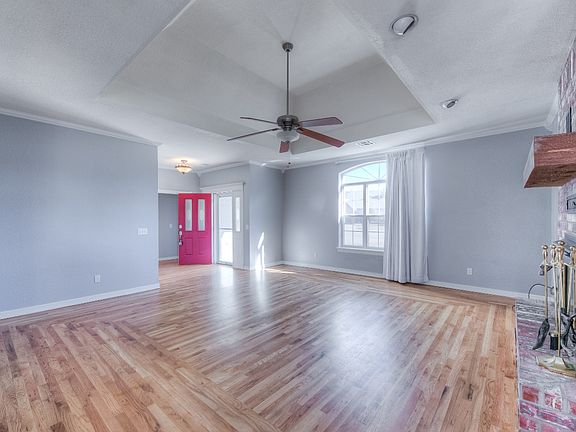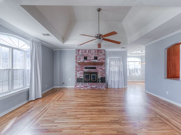 Corner lot house on cul-de-sac. Within walking distance to Mills Elementary. Close proximity to other schools, shopping, restaurants, parks, and expressway. 20 minutes to downtown Tulsa. Hard surface flooring throughout entire house except one bedroom. Living room with vaulted ceiling with fan, and heatilator woodburning fireplace. Kitchen with granite countertops, full appliances, including refrigerator, pantry w/barn door. Master bedroom with sliding doors to back patio, vaulted ceiling with fan. Master bath with (2) walk-in closets, walk-in shower, granite vanity, and large linen closet. Attic fan. Garage with remote access. Large open patio overlooks fully fenced back yard.