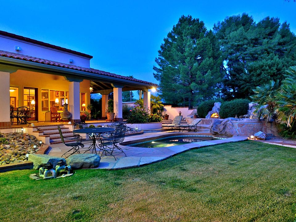 On the fairway in 49er C.C. with panoramic mountain views! This spectacular home built in 1990 features: courtyard entry; French doors; bay windows; custom Cradco wood sash double paned windows; lots of built-ins throughout; a huge great room with soaring beam ceilings; large kitchen with granite countertops, center island, and breakfast bar; spacious master suite with sitting area, fireplace, luxurious re-modeled bath, and big walk-in closet; copper pipes, private yard with pebble-tec pool & spa, 1600 square feet of covered brick patio with mission tile roof, built-in BBQ, flag stone deck, fountain, water feature, ground lighting, and lawn. The lot was engineered and raised to maximize views, privacy, and remove the property from being in the flood plain. 2 acre orchard with high producing well.