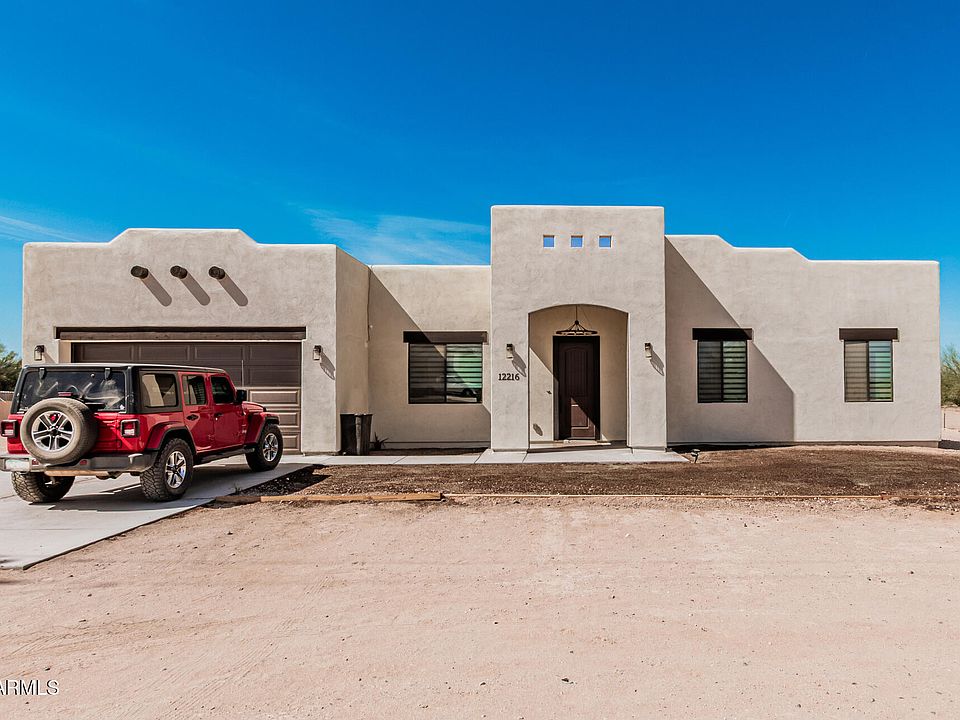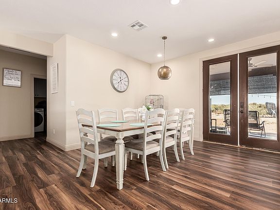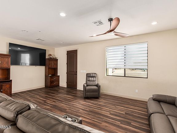 You've just found the perfect haven! Comfort meets style in this beautiful 4-bed, 2-bath home situated on over an acre! Discover the harmonious open floor plan that promotes an inviting ambiance, complemented by wood-look flooring, neutral paint throughout, and recessed lighting that brightens every corner. The impeccable kitchen comes with stainless steel appliances, plenty of cabinetry, subway tile backsplash, quartz counters, and a center island with a breakfast bar ideal for casual dining. Retreat to the serene primary bedroom, equipped with a walk-in closet and an ensuite with two vessel sinks. Enjoy mountain views from the massive backyard, offering a covered patio and stalls. Horses will love to roam! This gem won't disappoint!