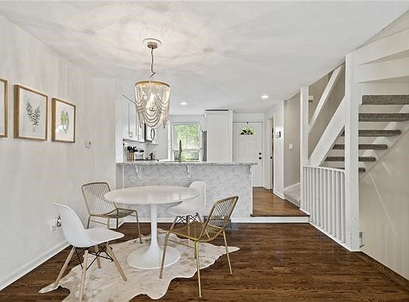 Move right in to this updated 2 story townhome with 2 large bedrooms and 1.5 baths in a highly sought after 100 acre community in Lenexa. Four Colonies features 4 pools, tennis courts and 2 clubhouses with 50 acres of common greenspace. Beautiful granite counters in an updated kitchen with SS Appliances. Hardwood floors on main level, gorgeous marble vanity counter tops in full & half bath. Laminate floors in the finished basement and bedroom level. Private fenced patio off of the living room - the custom built remote controlled shade on the patio door stays! Ring Floodlights and camera stay with the home. This property comes with TWO parking spots! Close to restaurants, grocery stores, retail shopping, Hidden Woods Park and major interstates and thoroughfares. This one will go fast! 2021-08-30