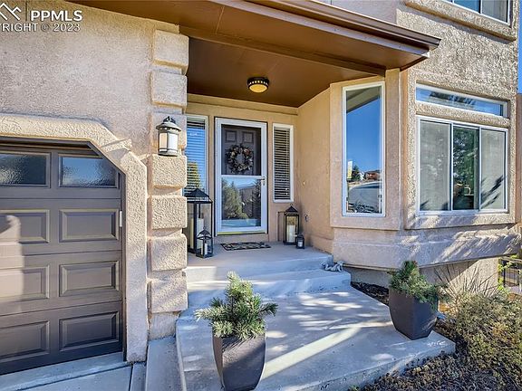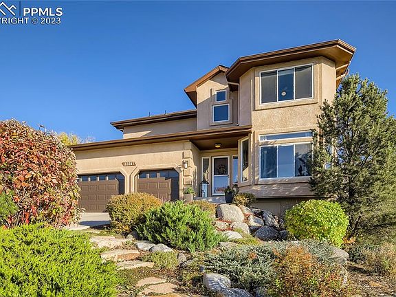Views, views, views! Pikes Peak and Front Range panoramic views from almost every room. Fantastic move-in ready 5bed/4bath home. Main Floor has large living room (currently used as 2nd office), dining room, bathroom, separate laundry room as well as kitchen with eat-in area that is open to family room and has a walkout to a deck and patio area. There is a main floor bedroom directly adjacent to a bathroom with shower - great layout for guests with mobility restrictions or just to provide privacy. Gourmet kitchen has leather finished granite counters, stainless appliances, 5-burner gas range, soft-close cabinets and eat-in nook. Family room has gas fireplace, built-ins (including wine refrigerator) and 2-story wall of windows - such a warm cozy place in the winter. Upstairs has a spacious Owner's Suite which includes a 5-piece bath with beautiful free-standing soaking tub, separate shower and walk-in closet. An upper-level bridge is open to family room below and receives lots of light from 2-story windows. Two other bedrooms & hall bath complete the upstairs. Walk-out Basement has additional bedroom, hall bathroom and large recreation room with wetbar & gas fireplace that has plenty of room for movies, pool table, etc. An additional room is perfect for a yoga studio/workout room/study room or home office. Unfinished room makes for fantastic interior storage. Great flexible layout. The backyard is large and partially fenced - room for playsets, garden, pets, entertaining. Deck is connected to lower concrete patio for a great backyard entertaining flow. 3-car garage has built in wooden shelving and workbench. Radon mitigation system. Great D-20 Schools including TCA nearby. Walking distance to parks, Santa Fe Trail, medical and an incredible variety of shopping/restaurants. Easy commute to military bases, airport & downtown. No neighborhood HOA, there is a small HOA fee for Northgate Business Association (pays for maintenance/landscaping of medians on Voyager).