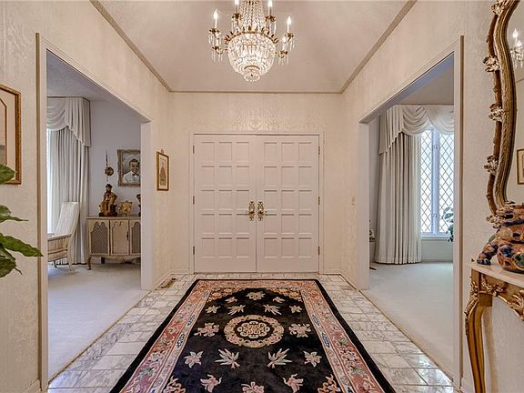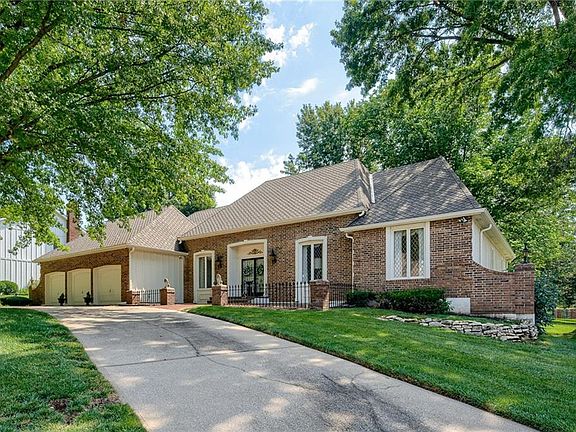 This incredibly well-built stately home is in a prime Leawood location and loaded with luxury. This 3 bedroom, 3 bath ranch home sits on a corner lot, with a circle drive and 3 car garage. Details are what you will notice when you first enter. Marble hallway, extravagant chandeliers throughout, and a living room with a vaulted ceiling and floor to ceiling original wood paneling. There is so much space in this house, including a formal dining room and living room...entertaining is a must! There are two master suites, plus an additional bedroom with a full bath just outside in the hallway. Sliding glass doors open to a private brick courtyard off of the kitchen, giving you privacy and a lovely space to dine or read a book. The unfinished basement is your blank canvas...finish it if you want more space or leave it unfinished for optimal storage. Don't miss this...old world Hollywood luxury in Leawood!