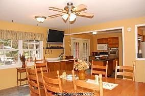 BIG REDUCTION! - 5 BR/3 Full Baths - Attached 2 BR In-Law Suite w/Gas Fireplace/Skylights/Full Kitchen/Separate entrance easily doubles as extra Family Room for main house. Dual A/C & Heat units. Extended Kitchen/Dining w/seating for 8 overlooks large Trek Deck & Private Gardens backing to woods. Brand New Carpet & Fresh Paint!