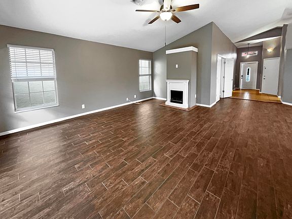 Welcome to this charming home with a perfect blend of comfort and functionality. Step inside and be captivated by the warm ambiance created by the inviting fireplace, creating the perfect spot.The natural color palette throughout the home exudes a calm and peaceful atmosphere, allowing you to relax. With the additional rooms for flexible living space, you can easily adapt them to suit your lifestyle.The primary bathroom boasts double sinks, ensuring convenience for those busy morning.You'll also appreciate the good under sink storage, providing ample space for all your toiletries and essentials. Step outside and be greeted by a fenced-in backyard, offering both privacy and security. The covered sitting area in the backyard is the perfect place and simply enjoy.