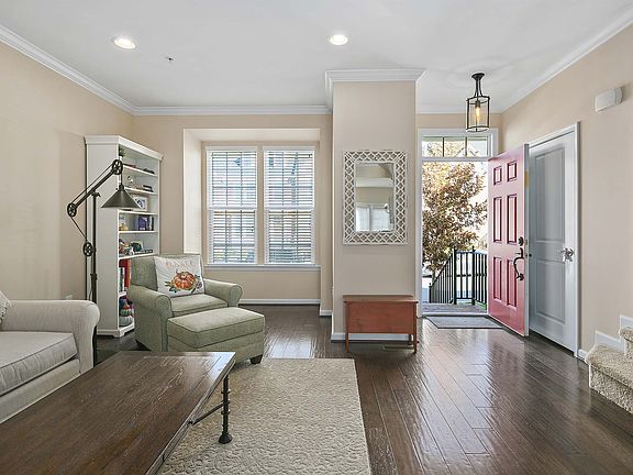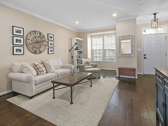 Welcome to this beautiful meticulously maintained townhouse, in the much desired community of Clarksburg Village. At only 4 years old, this home flows with natural light through the floor to ceiling bay window in the living room and the glass door to the private, fenced back yard, which leads to the detached 2 car garage. The open layout includes 9 foot ceilings, crown molding and beautiful hardwood floors on the main level. The open kitchen has a gas stove, stainless steel appliances, beautiful cabinets, granite countertops and a large center island that faces the dining area and is open to the living room. The second level includes the spacious primary bedroom suite along with primary bath and walk in closet. The two additional bedrooms share a full bath and the laundry is conveniently located on the 2nd floor as well. The lower level has a large family room with a window well, built in surround sound speakers installed by the builder, storage room and half bath as well as the utility room including the HVAC and the tankless water heater. Enjoy the privacy of the frnced in back yard and the detached 2 car garage. Clarksburg Village is convenient to the local schools, Clarksburg dining, shopping. Enjoy a community pool, clubhouse and the many trails and parks. Easy commute off Ridge Road / 27, accessible to 70 and 270.
