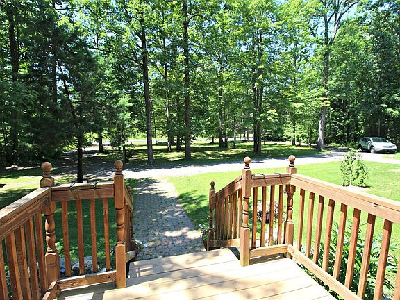 Private & secluded 10 wooded acres surround this 1 story home with open floor plan & cathedral ceilings. Master suite with private bath, garden tub & walk-in closet. 2 decks. Cut trails through the woods. Island kitchen includes all appliances. Main floor laundry. Circle drive.