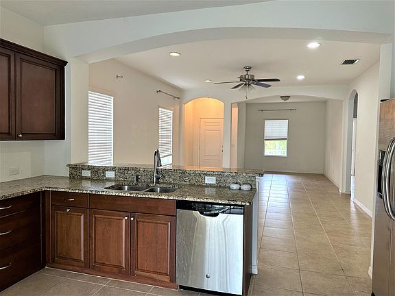 Beautiful 3-Bedroom, 2-Bathroom Neal Home located in the gated community of Central Park in Lakewood Ranch, this stunning lake-view home offers open floor plan. The kitchen feature granite countertops, stainless steel appliances, and custom cabinetry. The open living spaces and bathrooms are finished with 18" tile, while the bedrooms have vinyl flooring no carpet throughout the home. Brand-new refrigerator, dishwasher, and dryer were installed in February 2025. The screened lanai provides a serene view of the peaceful pond, perfect for relaxation. Central Park is a gated community offering excellent amenities, including a 10-acre park, walking trails, a covered pavilion, dog parks, and a playground. This home is conveniently located near shopping, restaurants, and schools.