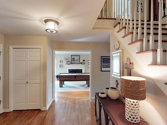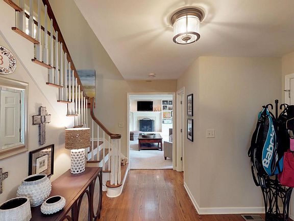 Impressive all brick 2 story home nestled in a cul-de-sac in Fox Den. Beautiful Hardwood floors blanket the entry way, formal dining room, living room and the kitchen. Updated eat in kitchen with SS appliances, center island with vegetable sink and a smooth top induction cook top. Wood burning marble fireplace in LR and designer fireplace with gas logs in family room. Family room has custom book shelves and is wired for cable above the fireplace. All new carpet throughout. Upstairs offers 4 bedrooms and 2 baths plus a loft. The master bedroom is a great size with tons of closet space. Master bath is tiled with dual vanities plus a make up vanity, tub and separate tiled shower. Outside the Large deck is great for entertaining overlooking the 7th hole. All this situated on a large mature lot
