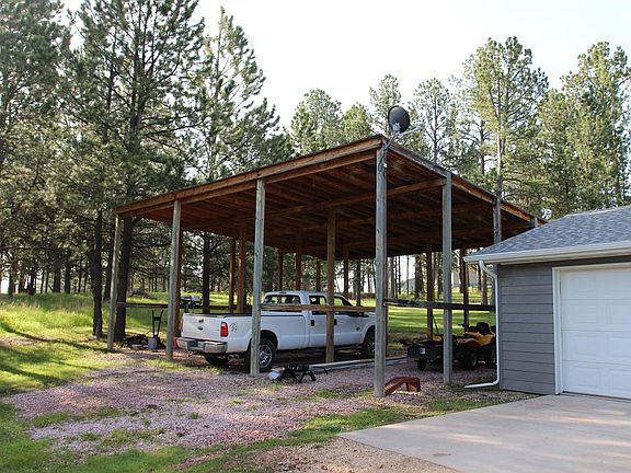 Upgraded and updated three-bedroom, two-bathroom home, detached oversized two car garage, very large, covered RV storage structure, additional 2-car carport, and a separate garden/storage shed out back. All this conveniently situated on a truly park-like 1.61-acre lot with custom landscaping, bordering BHNF land, no covenants, and only 2 miles from town. There is room for you, the pets, and all the toys you may want. What more could you want in your new property? Oh, did I mention that the home, garage, and shed all have brand new roofs and siding, along with new flooring throughout the home. If you want to live close to town on your own piece of the Southern Black Hills, want essentially a maintenance free home/garage, but don't want to break the bank to do it, this is your place. These types of places don't hit the market often, so don't wait too long and regret not making that move sooner.