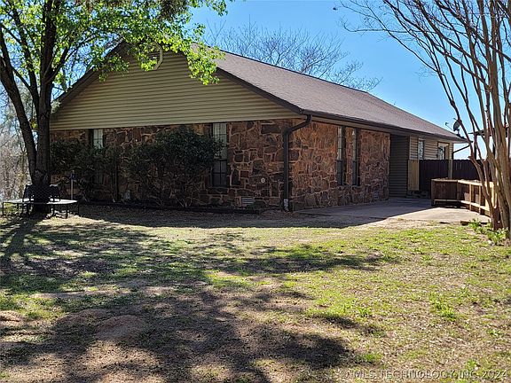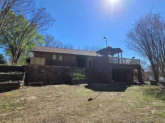 LITTLE BIT OF HEAVEN AT LAKE EUFAULA, OK! Right off Highway 9 West, this waterfront home is nestled in the wooded subdivision of Westport Beach of Mill Creek Bay. It is a gentle slope to the water's edge where you can sit on your private platform dock and enjoy the scenery and wildlife, fish or dock your boat. There is great fishing in this area and a quiet serene place to play on the water. The home features 3 bedrooms and 2 bathrooms with windows across the waterside for a great view from the living room or outside deck! There is lots of room for relaxing and/or entertaining outside on the decks and under the gazebos. The special bonus is an extra lot and a 20x24 garage/shop building. This is a great lake package at a reasonable price! Call today to set an appointment to view.