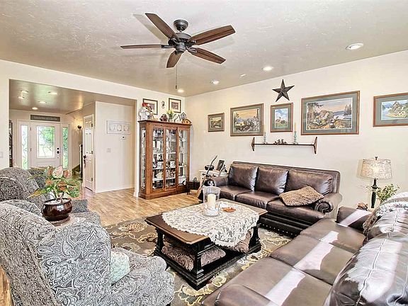 Have you been dreaming of a covered front porch, beautiful home with a dream kitchen, fully fenced yard with professional landscape, acreage and an 8 stall horse barn with studio attached? Here it is! This one owner custom home will exceed all your expectations. It has been said that the kitchen is the heart of the home and you will enjoy your time preparing meals, entertaining friends and family. The master suite is located on the main level and features a 5pc master bath and a sitting room/exercise room. The upper level has three bedrooms, theater room, family room and office. Outside you will enjoy the wonderful landscape, plantings, gazebo , sundial as well as the large patio areas. Your horses will be happy too! 8 stall barn with 4 runs, water to each stall. Everything that you or your horses could want. All this on 6.60 acres with 6 shares of irrigation + private headgate. WOW!