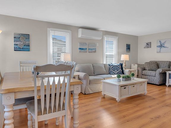 Steps from Belmar Marina, newly-renovated summer rental. Water views of the Shark River. Our marina area property is just steps away from the Belmar Marina, L Street Beach, Maclearie Park, where the sunsets are mesmerizing and there is also a playground with new tennis and pickleball courts, standup paddleboard and kayak rentals, waterfront restaurants (such as Marina Grill, Ninth Avenue Pier, and Klein's), mini golf, charter fishing boats, pier fishing, ice cream shops (such as Dairy Queen, Strollo's Italian Ice, and Niki Maccanico's) and so much more. Belmar has vibrant year-round activity. The property contains two separate rental units, each newly remodeled. Each unit includes two bedrooms, one full bath, a beautifully remodeled kitchen with stainless steel appliances, including dishwasher, white shaker cabinets, granite countertops, a breakfast bar. Dining table seats 8. Each unit has a spacious open floor plan, in-unit full size washer and dryer, 55" flatscreen TV in the living room and flatscreen smart TV in the primary bedroom, and included WiFi and internet. Mini-split air conditioners provide zoned climate control, and each unit has its own independent baseboard heating system. Ample free parking. Close to Main Street, coffee shops, restaurants, bars, and night life. Blocks from the Belmar train station for easy access to Asbury Park, Point Pleasant, and NYC. Also convenient access to the Garden State Parkway. July, August, and September 2025 are available. Linens provided. Owner on adjacent property. Credit check required. Check-in time is 4 PM. Check-out time is 11 AM.