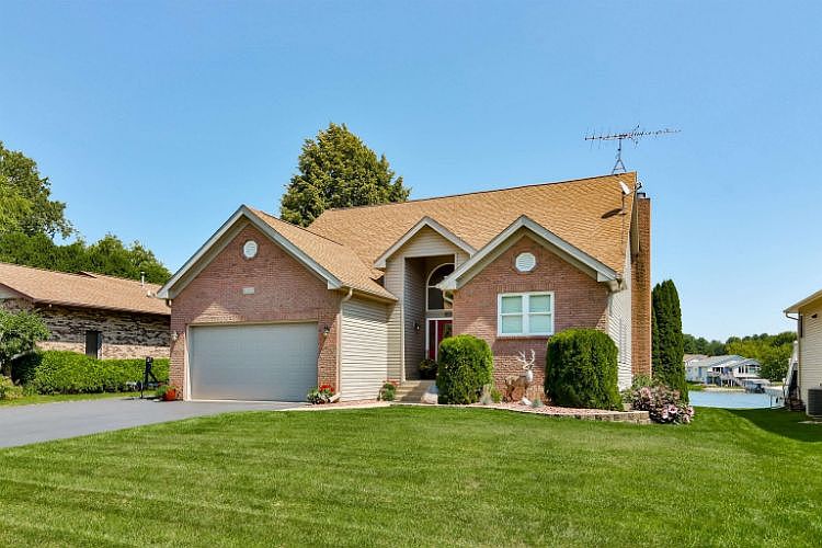 Welcome to this exquisite 3, 242 sq. foot custom lakefront home! Gorgeous 4 bedroom Candlewick Lake home offers it all! The main floor welcomes you with a large foyer that opens to the two story living room with delightful views of the lake! The Gourmet kitchen has been perfectly designed with maple cabinetry, granite countertops and includes two pantries; one is a 7 x 6 walk-in pantry that holds your second refrigerator. The owner's suite includes an extra large walk in closet, bath with soaking tub, walk-in shower, and vanity. Main floor laundry. But it doesn't stop there! The second floor offers two large bedrooms and a full bath! You can enjoy the tranquil lake views from all three levels of this home. The walkout basement offers the fourth bedroom plus a full bath, rec room with fireplace and a massive storage room! Pride of ownership at its BEST! Whole house generator, zone heating cooling, leaf guard, back up sump pump, Bose surround sound with hidden wiring, central air and furnace new 2016, deck dock re-done 2020. This lot is situated on a wake free zone. The dock with electricity will truly please any fisherman! Items that stay with purchase: Pier, dock furniture, gas grill, all appliances!