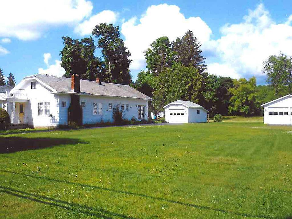 Circa 1929 Cape, featuring period moldings, doors, hardwood floors, ornate ceilings, beautiful brick fireplace. Large lawn, huge garden space, 2 car garage, and a 1 car garage. Land borders the NY State Dept. of Parks/Recreation Trail System, snowmobile, access hiking, walking, bicycling.
