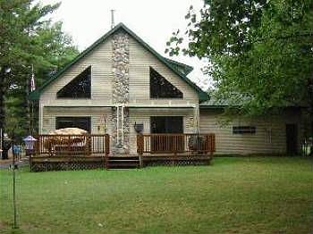 ER CHAIN CHALET/JM/ Popular chalet style home on the Eagle River Chain of 28 lakes. Come up and enjoy this 3 bedroom, 2 bath home that was built in 1999. The floor to cathedral ceiling fieldstone fireplace with gas insert is the focal point of the huge great room. A nicely equipped kitchen adjoins the great room and both look out over the water. On the main floor, there are 2 bedrooms and a bath. Upstairs, there is a large master bedroom and bath with walk-in closet. There also is an office which looks out over the great room. There is a full unfinished basement with stubbed in plumbing where one could add additional living space. A large 29' x 29' attached garage is plenty big to handle most of the toys. There is also a large lakeside deck and a new pier. A paved driveway and less than 5 minutes to Eagle River by boat or car completes this great package. Come and take a look at this terrific home.
