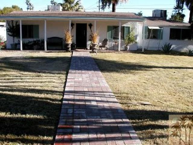 Mini-Hacienda in Ruth Hardy Park area. Used brick path leads to covered porch and onto paver tile floors. Most rooms have vaulted-beam ceilings. This home has lots of windows and French doors. Living room has romantic wood burning fireplace as its centerpiece. Located on a corner lot with Palm and fruit trees. Mountain views from large oversized private pool. This home is a rare find!
