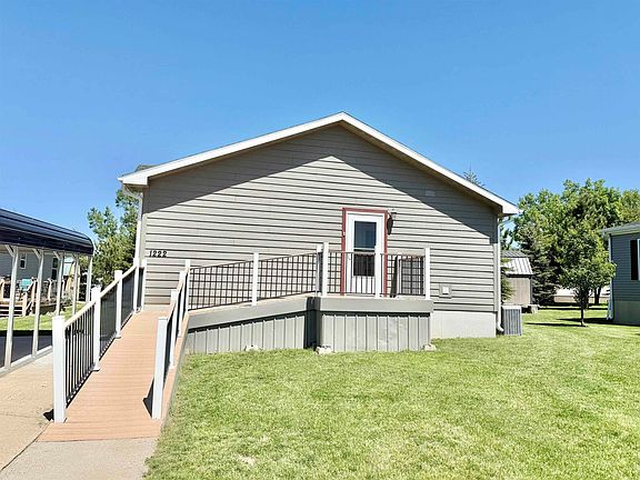 Listed by Audra Nelson Bailey, Vylla Home 605-261-9122 For Sale: Immaculate 3 Bed, 2 Bath Home in Desirable Mt. Shadows Estates This meticulously maintained home offers comfort, style, and functionality with 1800SF. Freshly updated with new paint and flooring throughout, this move-in-ready gem is loaded with thoughtful features. Step inside to find a spacious kitchen complete with a large island, pantry, and open flow into the living and dining room. The bright spacious dining area leads directly to a covered, maintenance-free deck—perfect for entertaining or relaxing! The expansive primary suite boasts a new tiled walk-in shower in addition to the original walk-in shower and an impressive walk-through closet. Two more bedrooms, a full bath and large laundry room at the front entry complete the home. Additional highlights include-Single carport for convenient covered parking, Handicap Accessible ramp, 12x12 shed for extra storage or workspace, mature trees offering natural beauty and privacy located in a quiet, well-kept neighborhood. Don’t miss your chance to own this beautifully cared-for home! Current Lot Rent is $450. Seller will pay $1800 toward lot rent through September.
