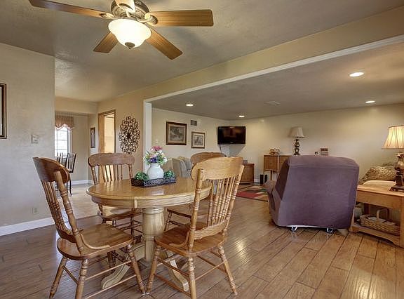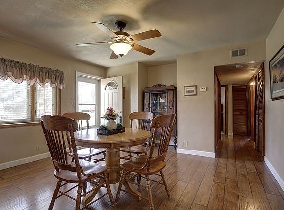 Cheerful Ranch w/ Fantastic Remodeled Kitchen. Hickory Cabinets w/ Sile Stone Counters, Tile Backsplash, Ceramic Tile Floor, Breakfast Bar are just a few of the Kitchen amenities. The Dining Room & Living Room have Wood Laminate Flooring & Picture Window. 3 Bedrooms w/ New Carpet, New Closet Doors & Newly Painted. Update Full Bath has New Tub & Surround, New Floor, New Sink Vanity. Large Laundry Room & attached Bath, New Front Door, New Garage Door. Corner lot and 6 Car driveway w/ access to back yard. Shed has electricity!