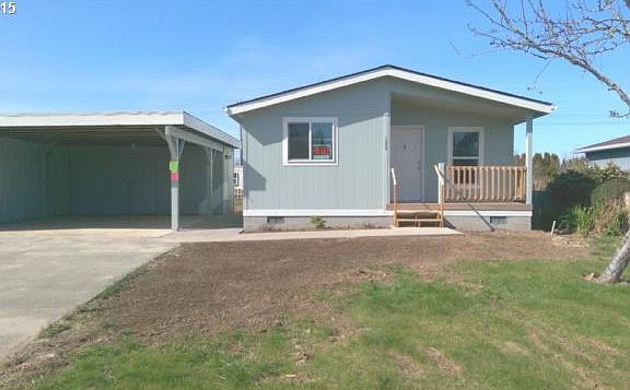 New 2014 spacious manufactured double wide home on a city 60X100 lot with connections to utilities. Includes a detached carport for 2 cars and a large enclosed storage area. The home is on a dead end paved street with low traffic volume. Within 1 mile you have shopping, schools, medical/hospital, port docks for fishing, crabbing, old town ect. The property has large back yard graded landscaping as new home owner desires or for gardening