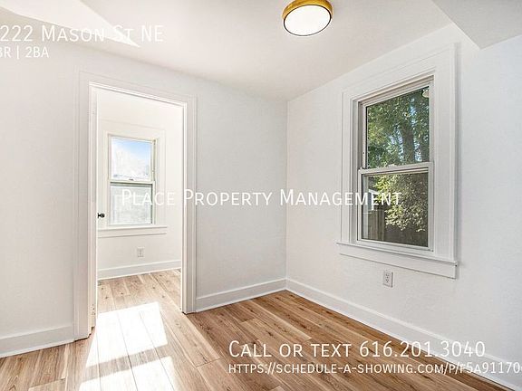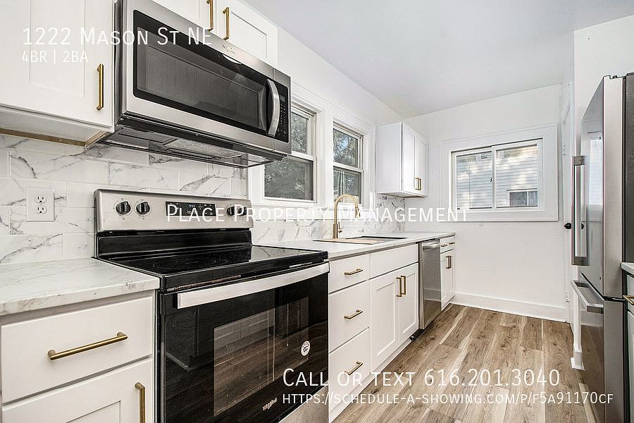 Welcome to 1222 Mason St NE, a charming 4 bedroom and 1.5 bath house in Grand Rapids, MI. This home features main floor washer/dryer, stainless steel appliances (stove, refrigerator, microwave, and dishwasher), and a completely updated kitchen with lovely gold finishes. The spacious living areas boasts new carpet, luxury vinyl plank and plenty of natural light. Enjoy the comfort of off-street parking and an enclosed porch, perfect for relaxing or entertaining. With a large backyard and an unfinished basement for extra storage, this house has everything you need. Plus, pets are allowed, making it a welcoming space for everyone. Don't miss out on this fantastic opportunity to make this house your home! Pets allowed ($300 pet deposit +$35 monthly pet rent) Resident responsible for all utilities... Electric, Gas, Water/Sewer, Trash Removal, Lawn Care, and Snow Removal. Enclosed Porch Large Backyard New Carpet New Kitchen Pets Allowed Stove/Range Washer/Dryer In Unit