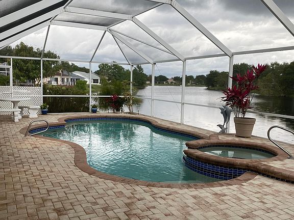 Come and see this to believe it, extremely well maintained 3 br 2 bth 2 car garage,concrete block home. That sits on .26 of an acre in a great complex in Rockledge. a great location close to Viera mall,Lowes many grocery stores, interstate 95 and the beach line {528} about 20 min to get to the best beaches in Brevard county. Split bed room plan, large master br,master bth has tub,his and her sinks,door leading to the pool area, valted ceilings, kitchen with plenty of cabinets , granite counters,formal dining and living room,large living area with a wonderful view to the beautiful screened in SOLAR HEATED pool with a comfy hot tub that overlooks a peaceful large lake, what a great place to relax and rid yourself of all your stresses. Tenants pay all utilizes electric, water, pool maintains, yard maintains.