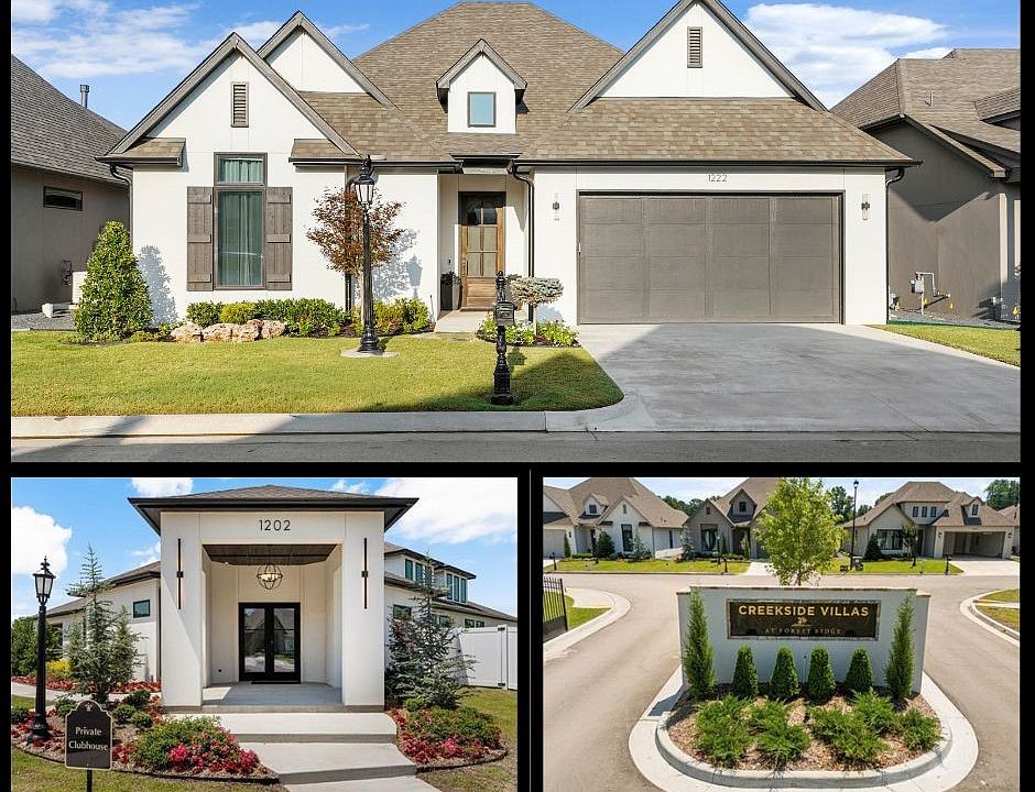 This stunning home is in the Wonderful Gated Creekside Villas at Forest Ridge! Better-than-new and meticulously crafted with all the bells and whistles, this home truly has it all! Great open split plan with soaring ceilings and tons of windows! 3 bedrooms all with private baths. Wonderful plan for Mother-In Law. Zero entry showers, easy for wheelchair accessibility. Experience serenity with the breathtaking farm view from the oversized back patio, ideal for relaxation and outdoor gatherings. Gourmet kitchen with premium Thermador appliances, butler's pantry w/beverage refrigerator and walk-in pantry. Wine grotto for refined entertainment. Whole home generator. Fully fenced, automatic shades, wi-fi doorbell and wi-fi thermostat. Oversized garage with epoxy floor. Enjoy the exclusive amenities of the private neighborhood, including clubhouse, dog park and yard maintenance.