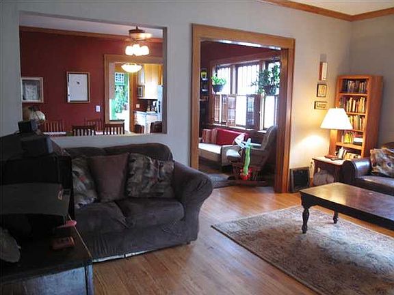 Sharp Riverside bungalow. Close to the river, park, caf and coffee shop. Wood floors throughout, formal dining room, spacious bedrooms and a stunning new kitchen. Partially finished bath and office in the walk out basement. 2 patios in the fenced back yard, one with a fire pit. Extra deep one car garage and nice driveway.