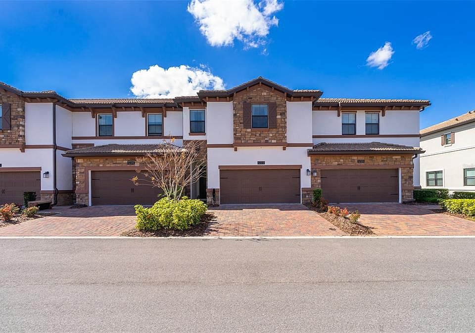 THIS GORGEOUS TOWNHOME WILL NOT LAST, IT COMES COMPLETELY FURNISHED, JUST BRING YOUR SWIMSUIT AND TOOTHBRUSH. This home offers a two story, four bedroom, 3.5 bathroom with a two-car garage that comes with ceiling mounted shelving for extra storage . As you enter through the front door you will appreciate the open floor plan that this home offers with a large kitchen that includes 42 inch cabinets, stainless steel appliances and a large island for prepping all your favorite meals. Step out onto your paved lanai for some outdoor entertaining of family and friends. The second floor primary en suite bedroom has tray ceilings, large walk-in closet and a huge bathroom with double vanities, garden tub and walk-in shower! This unit is a short distance to the community clubhouse/pool which offers a golf simulator, game room, sauna and fitness center for your pleasure. Want to feel like your on a tropic vacation ? You will also have access to The Oasis Club which includes a lazy river, water slide, splash zone, movie theater , restaurant and much more . This property has access to I-4, the residents of The Vistas are minutes to Disney World and a vast array of shopping, dining and golfing experiences to discover.