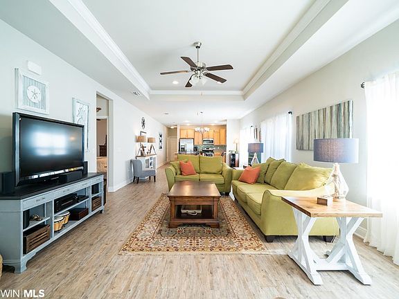 GOLD FORTIFIED 3 bedroom 2 bath all one level IMMACULATELY cared for beauty located in sought after gated Cottages on the Greene. This home features granite counters, stainless appliances, new kitchen backsplash, soft close kitchen doors, kitchen island, covered front porch, two car garage. Owner has recently added the following upgrades: shiplap accent wall to Mbedroom, new shower door to Mbath, 11x9 outdoor grilling pad, storm door w/ screen, updated landscaping, two lighted ceiling fans w/remotes. No carpet just beautiful luxury vinyl plank flooring throughout. Window treatments. Hurricane fabric window covers. Enjoy the gated Cottages on The Greene lifestyle with amenities including a swimming pool, clubhouse & fitness room. Subdivision location allows for easy access to OWA, The Tanger Center, The Wharf, all with excellent dining, shopping and abundant with year round activities. Located just minutes from our beautiful beaches!