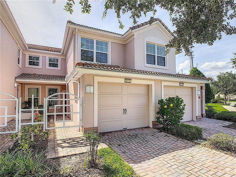 Welcome to the largest bottom floor condo in Bella Trae @ Champions Gate. The Egret in the Promenades section, is a corner unit which makes the condo lighter and airier with the natural light coming in from the extra windows on the side. With parking at a premium, it boasts an extra long driveway/garage. Additional parking is right next door. Upon opening the front door, your immediate attention is drawn to your waterview of the pond in the rear of the unit. Spend your days and evenings relaxing on your screened in Lanai. The galley kitchen has upgraded cabinetry with a large Breakfast area w/slider, also leading to the lanai. The condo is 2 bedroom with Den/BR and 2 full baths. Tile thru-out wet area. Carpet in rest of unit. Washer/Dryer area. HOA includes Cable and Internet.