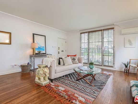 Upon entering this 2 Bedroom, 1 Bathroom, 1350 square foot, 1926 upper unit, you will be impressed with the expansive space and light that 1st awaits you. The living room boasts incredible light from the large vertical windows that overlook the treetops for a birds eye view. Beautiful 1920's arches connect the living room to the formal dining room. The wide plank wooden floors flow from room to room. A mini-split is located in the Living Room. Lots of counters and cabinets allow for a great and functional kitchen, with a good sized breakfast nook. Great for entertaining and family time. A long corridor leads you to 2 bedrooms that face the beautiful backyard, with 1 bathroom with bathtub and shower. A designated utility room provides you with a washer and dryer for your private use. A back staircase brings you down to the very large back yard that is only shared with the unit below. Lots of great Southern California outside space, with rose garden and fruit trees, which can be utilized most of the year. There is a small garage for storage only. Plenty of street parking right in front of the property on this tree lined wide street. Very central location with easy access to the 10 freeway. Very close proximity to businesses and shops on La Brea and Pico Boulevard, including All Season Brewing, Met Him At A Bar, Her Thai, Gigis, Skys Tacos, Bloom, & My Two Cents. AVAILABLE NOW WITH PRORATED RENT. Each applicant is required to fill out an application and submit through RentSpree. Copyright The MLS. All rights reserved. Information is deemed reliable but not guaranteed.
