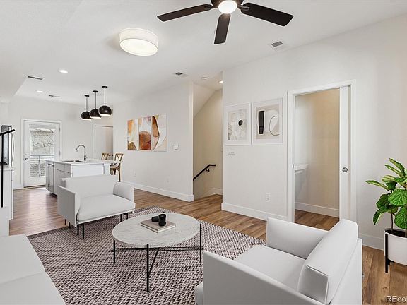 and secondary bedrooms, each equipped with a dedicated en-suite bathroom and large closets. The laundry is conveniently located on the third floor as well. No more hauling laundry up and down stairs! The location is hard to beat--across the street from a park and rec center, just minutes from Belmar's parks, restaurants, shopping, and entertainment, with easy access to light rail, downtown Denver, Red Rocks, and 6th Avenue for quick trips to the mountains. With its modern urban farmhouse aesthetic, sustainable features, and prime location this house is ready to be your home. HOA covers water, landscaping, snow removal, roof maintenance, recycling, and a community garden.