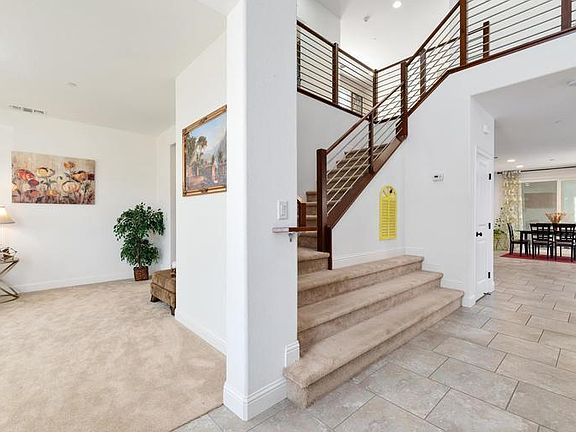 Stunning 4 year old Woodside Home - Heritage, Steinbeck - Plan 3, in Mountain house @ Hansen Village ~ Entrance to Beautiful Foyer with 20' High Ceiling ~ Stained & Horizontal Brushed Steel rods Staircase leading to the second level ~ Downstairs flex room can be used as an office/den/study/formal living room ~ Full bath and bedroom downstairs ~ Expansive floor plan combining living room, dining & kitchen ~ Kitchen has loads of features with full length backsplash and Quartz Cancun Beach countertops & Island ~4 bedrooms with access to 3 bathrooms ~ Uniquely positioned 4 bedrooms in 4 corners with no share walls ~ Engineered Marble Tibetan Beige countertops in bathrooms ~Master bedroom with his & her walk-in closets ~ Loft area upstairs with pre-wire for TV ~ Upstairs full size laundry room with pre-plumb for kitchen sink ~ No HOA ~ Attached 3 car garage ~ Ideally positioned Doors & Windows for optimal ventilation ~ Ample daylight.