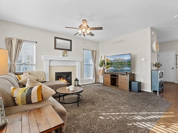 - Features: Carpet, Ceiling Fan(s), Fireplace