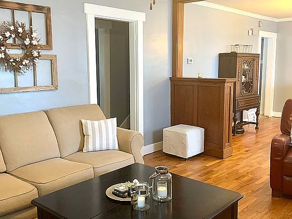 A must see, this early 1920's 1 1/2 story bungalow home. Features beautiful oak woodwork, built in desk and window seat. Many mechanical updates along with unique, special features for storage and additional living space, Bonus Room. Covered front porch with swing as well as a covered backyard patio. 2 car garage and fenced back yard. Lots of comfortable space in this house, move in ready.