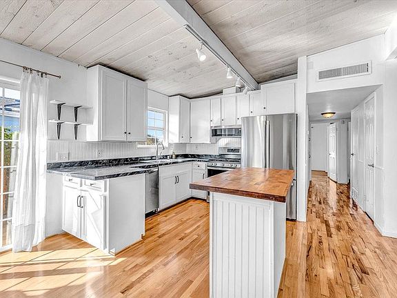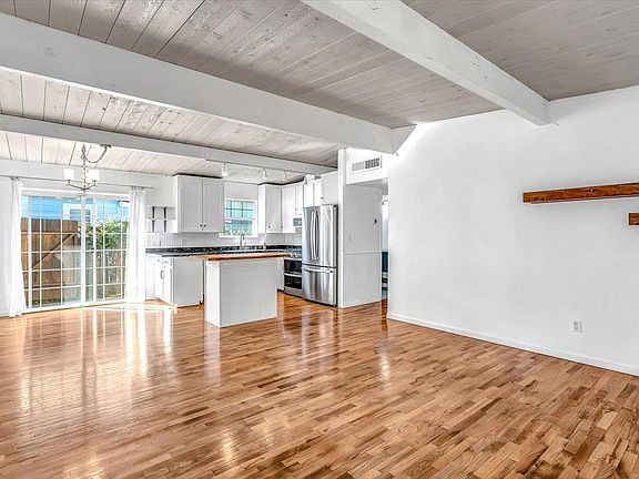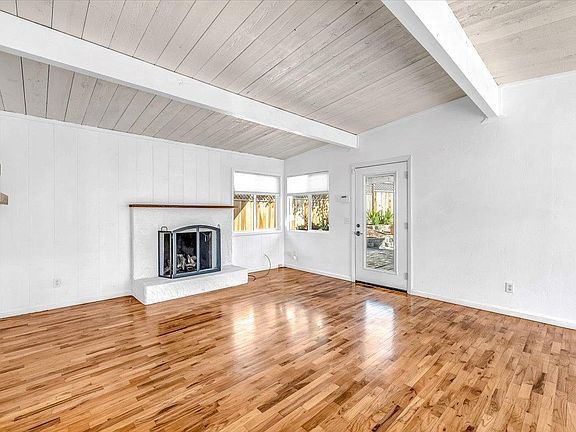Situated in one of Pacific Grove's sweet neighborhoods, this bright and light single level mid-century modern three bedroom, two bath home is a delight! Its open floor plan boasts double pane windows, hardwood floors, open beamed ceilings, a living room with gas fireplace, and an updated kitchen with an island and pantry. The charming dining area with a sliding glass door opens onto another outdoor sitting area. The home has been updated with refinished hardwood floors through out, new primary and secondary bathrooms, new furnace (2020), new roof (2020), new counter top and sink (2022), and recently replaced appliances. doors in the primary suite allow access to the sunny back yard. There is outside living with a front and backyard patio, and the sun shines on a lemon and apple tree. There is also a landscaped front yard garden. Close to Pebble Beach, the ocean, shopping, and schools! Welcome home!