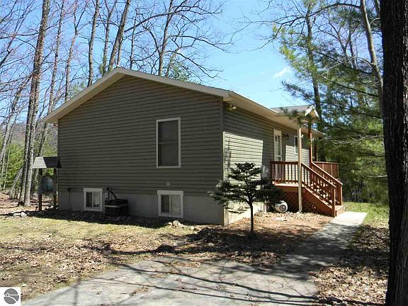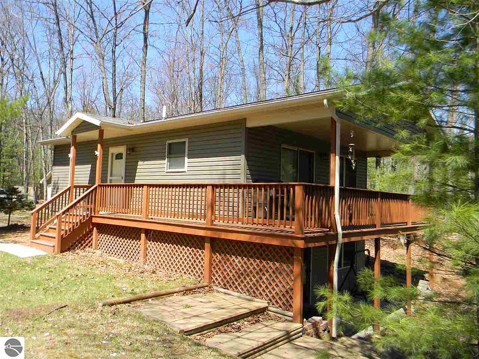 Enchanting lakefront home or cottage borders National Forest! Built in 2007, this 2BR+, 2 bath sweetie is ready to enjoy the day you close! Extra space in the full walk-out, knotty-pine basement with a cozy wood burner. Amazingly nice covered deck is perfect for all occasions, rain or shine! Great view of peaceful Helmer Lake, and with National Forest on two sides you get a great sense of privacy. Air conditioning, storage shed, open floor plan with vaulted, knotty-pine ceilings, patio area under deck, and all in like new condition! Walk out the door to National Forest and all the Snow and ORV trail systems, enjoy the water, or just relax, this is the best of all worlds! Thundercloud Trail is a private drive, currently maintained by a neighboring property owner. The property owners that use it pitch in to keep it in decent shape.