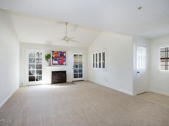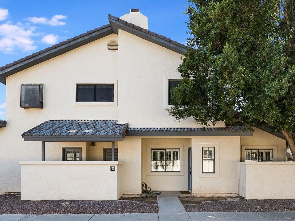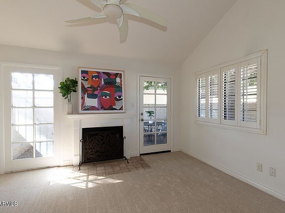 Amazing single level ground floor condo in a beautiful, centrally located community with a 1 car garage! Great indoor/ outdoor living with 3 separate patio areas and just steps from community pool. Great room w/ vaulted ceilings and French doors to lovely private patio w/ large ficus tree. Wood burning fireplace, gorgeous windows, plantation shutters, dining in great room and kitchen w/ pantry and door to another patio. Large master w/ 9ft ceilings, walk-in closet and sliding doors to private courtyard. Second bedroom and bath, also with separate outdoor patio. 1CG and 1 additional assigned spot, low HOA in a beautiful, quiet community. Close to freeways, ASU, and all that the valley has to offer!